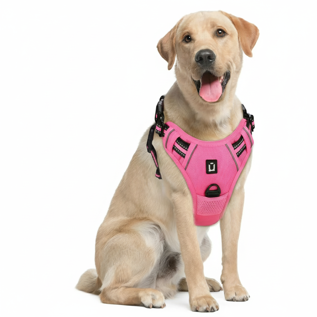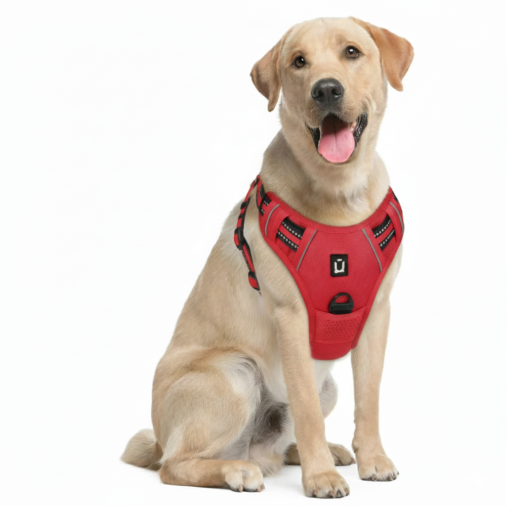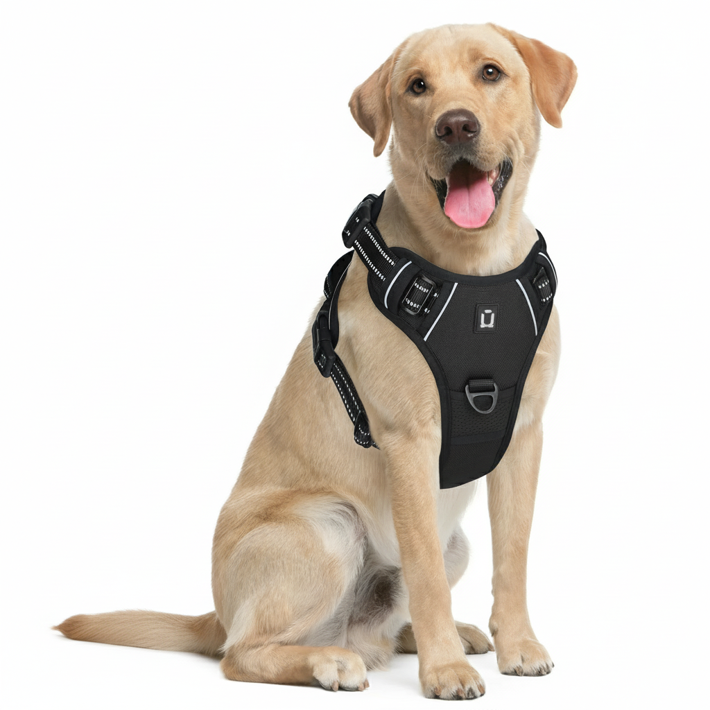 Befestige deine Leine am verstärkten Anti-Zieh-Brustring. Damit lenkst du die Energie deines Hundes sanft um, sobald Zug entsteht – ohne Druck auf den Hals.